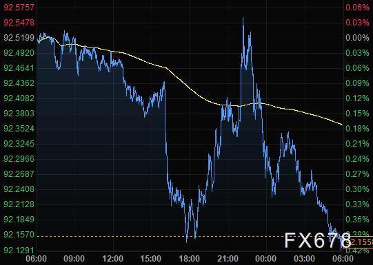 美元指数尾盘跌0.39%至92.15,周一跌至92.013的三个月低点,该指数目前守在92左右的关键技术支撑位之上,分析师称如果跌破该支撑位,将导致进一步下跌。